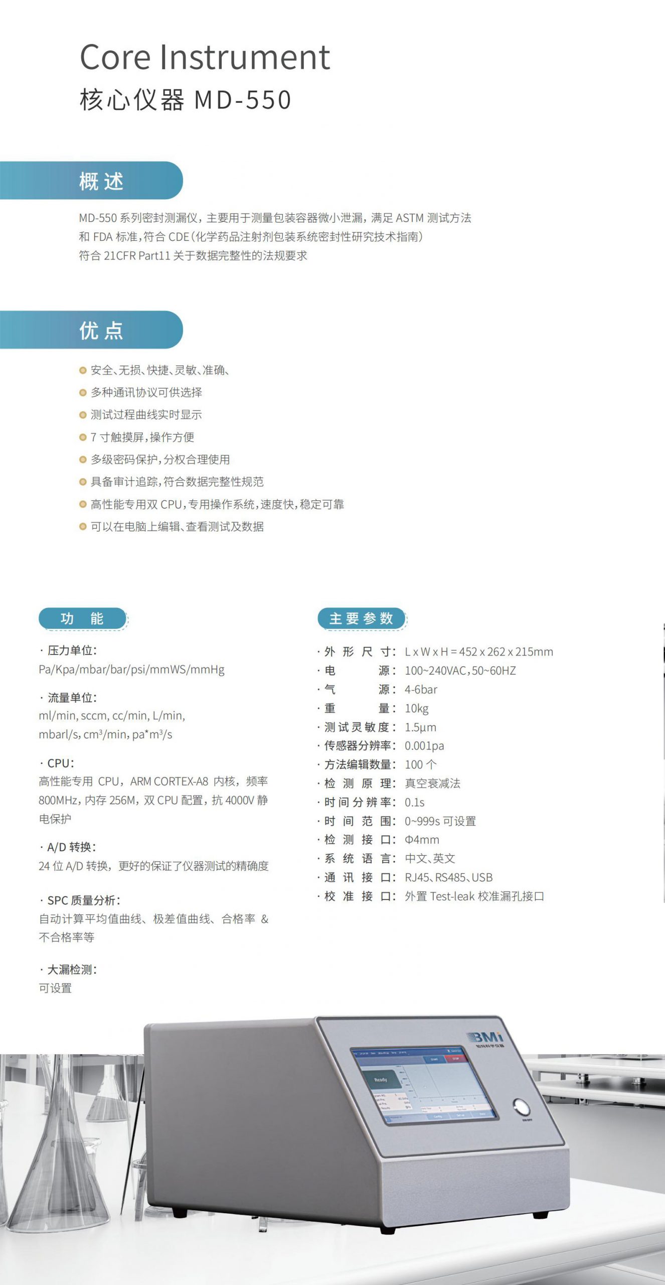 Wed, 16 Nov 2022 07:26:42 +0000http://www.jxcfbj.com/?post_type=tq_products&p=905MD-550 系列密封測漏儀,主要用于測量包裝容器微小泄漏,滿足 ASTM 測試方法和 FDA 標準,符合 CDE(化學藥品注射劑包裝系統(tǒng)密封性研究技術指南)符合 21CFR Part11 關于數(shù)據(jù)完整性的法規(guī)要求。