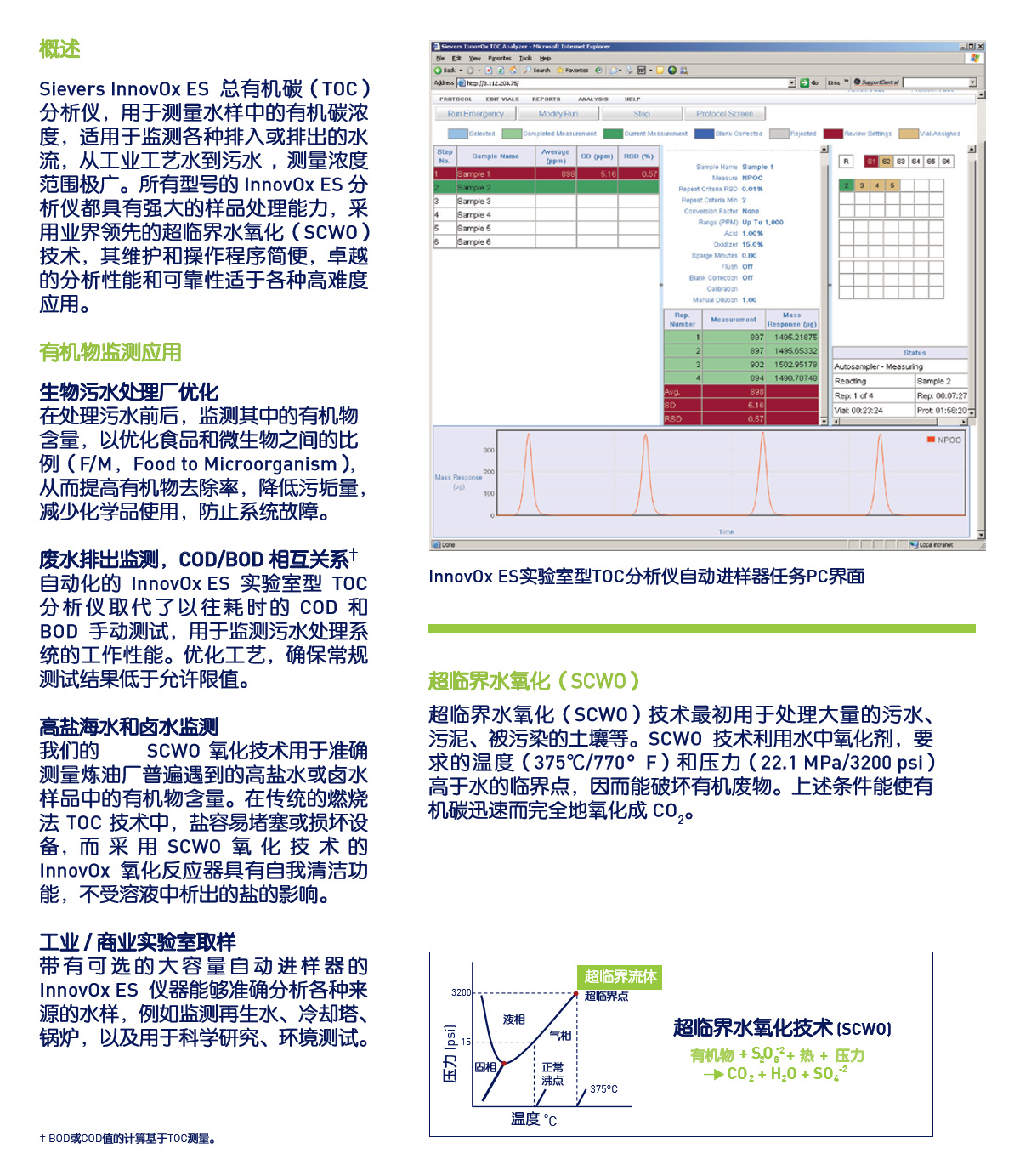 Thu, 18 Jun 2020 02:55:26 +0000http://www.jxcfbj.com/?post_type=tq_products&p=280Severs Innovox ES總有機(jī)碳(TOC)分析儀,用于測(cè)量水樣中的有機(jī)碳濃度,適用于監(jiān)測(cè)各種排入或排出的水流,從工業(yè)工藝水到污水,測(cè)量濃度范圍極廣。所有型號(hào)的 Innovox ES分析儀都具有強(qiáng)大的樣品處理能力,采用業(yè)界領(lǐng)先的超臨界水氧化(SCWo)技術(shù),其維護(hù)和操作程序簡便,卓越的分析性能和可靠性適于各種高難度應(yīng)用。